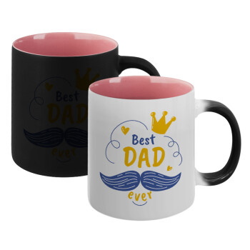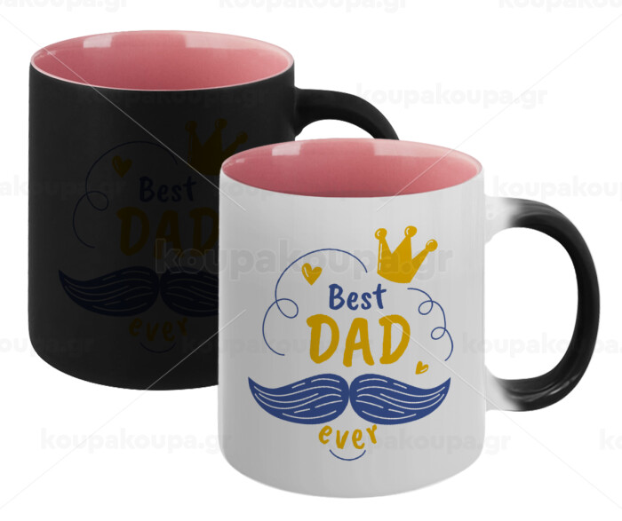 Best dad ever ο Βασιλιάς, Κούπα Μαγική εσωτερικό ΡΟΖ, κεραμική 330ml που αλλάζει χρώμα με το ζεστό ρόφημα