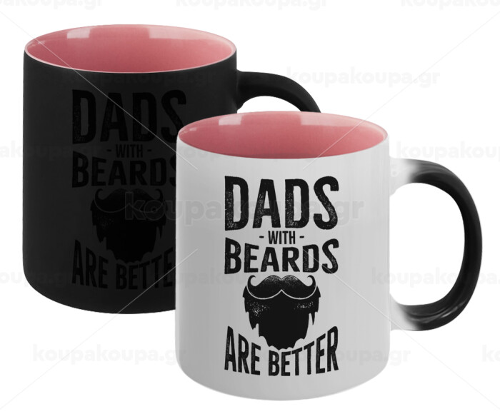 Dad's with beards are better, Κούπα Μαγική εσωτερικό ΡΟΖ, κεραμική 330ml που αλλάζει χρώμα με το ζεστό ρόφημα