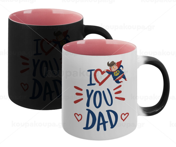 Super Dad, Κούπα Μαγική εσωτερικό ΡΟΖ, κεραμική 330ml που αλλάζει χρώμα με το ζεστό ρόφημα