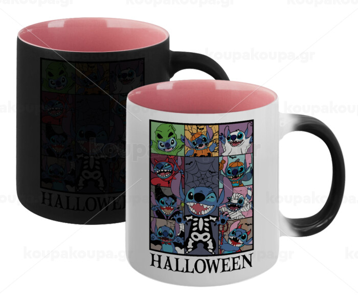 Stitch Halloween, Κούπα Μαγική εσωτερικό ΡΟΖ, κεραμική 330ml που αλλάζει χρώμα με το ζεστό ρόφημα