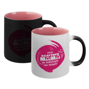 Στην καλύτερη μαμά του κόσμου!, Κούπα Μαγική εσωτερικό ΡΟΖ, κεραμική 330ml που αλλάζει χρώμα με το ζεστό ρόφημα