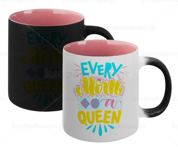 Every mom is a Queen, Κούπα Μαγική εσωτερικό ΡΟΖ, κεραμική 330ml που αλλάζει χρώμα με το ζεστό ρόφημα