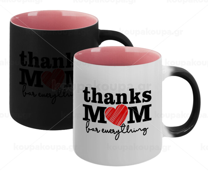 Thanks mom for everything, Κούπα Μαγική εσωτερικό ΡΟΖ, κεραμική 330ml που αλλάζει χρώμα με το ζεστό ρόφημα