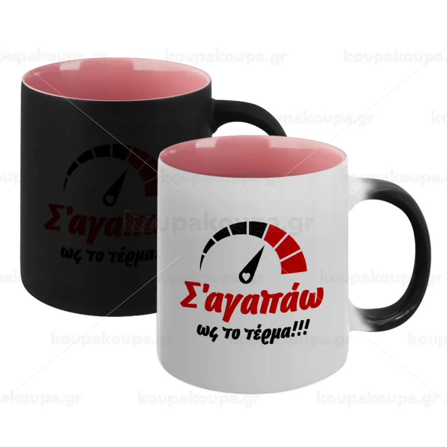 Σ΄ αγαπώ ως το τέρμα!!!, Κούπα Μαγική εσωτερικό ΡΟΖ, κεραμική 330ml που αλλάζει χρώμα με το ζεστό ρόφημα