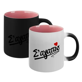 Σ΄ αγαπώ!!!, Κούπα Μαγική εσωτερικό ΡΟΖ, κεραμική 330ml που αλλάζει χρώμα με το ζεστό ρόφημα