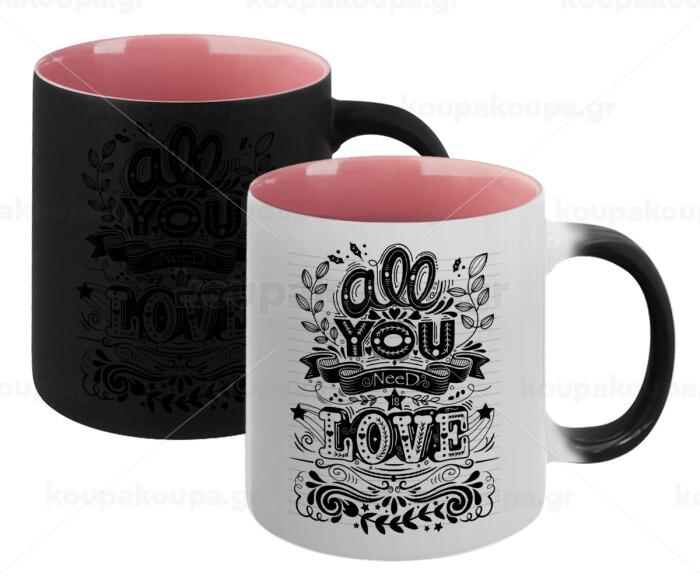 All you need is love, Κούπα Μαγική εσωτερικό ΡΟΖ, κεραμική 330ml που αλλάζει χρώμα με το ζεστό ρόφημα