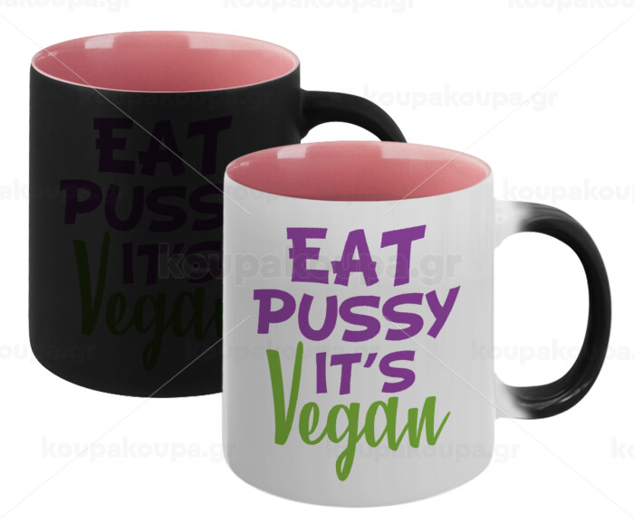 EAT pussy it's vegan, Κούπα Μαγική εσωτερικό ΡΟΖ, κεραμική 330ml που αλλάζει χρώμα με το ζεστό ρόφημα