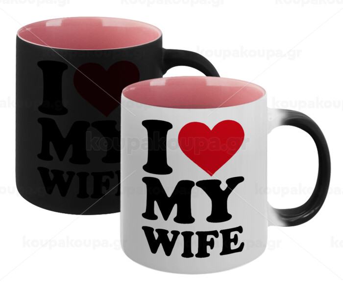I Love my Wife, Κούπα Μαγική εσωτερικό ΡΟΖ, κεραμική 330ml που αλλάζει χρώμα με το ζεστό ρόφημα