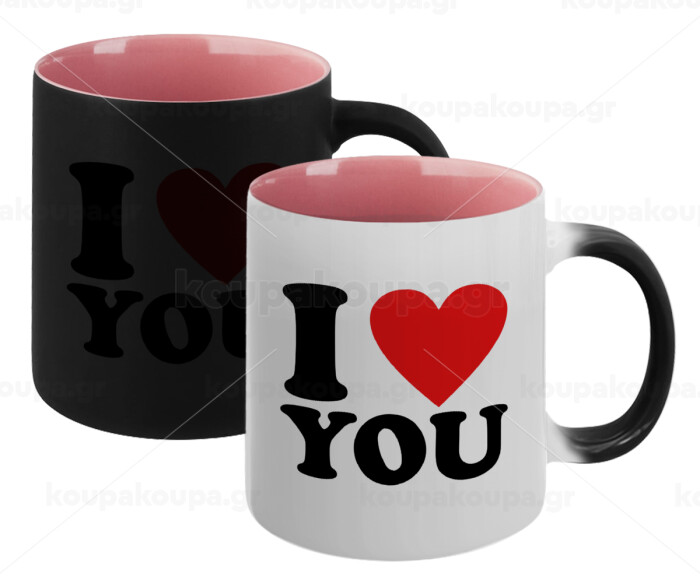 I LOVE YOU, Κούπα Μαγική εσωτερικό ΡΟΖ, κεραμική 330ml που αλλάζει χρώμα με το ζεστό ρόφημα