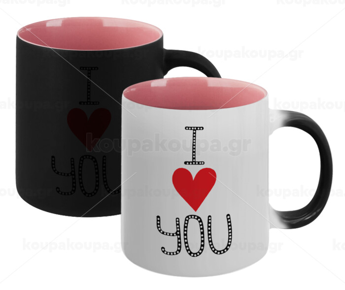 I Love You small dots, Κούπα Μαγική εσωτερικό ΡΟΖ, κεραμική 330ml που αλλάζει χρώμα με το ζεστό ρόφημα