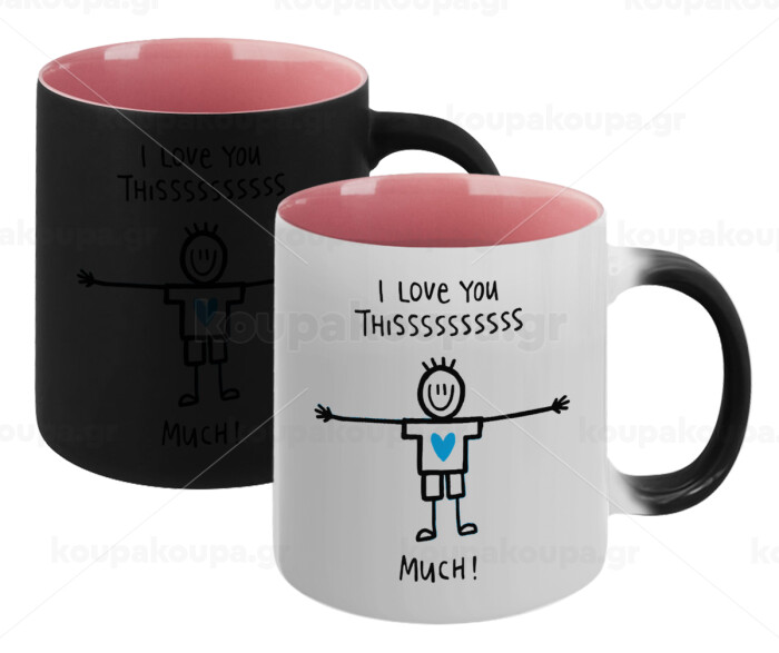 I Love you thissss much (boy)..., Κούπα Μαγική εσωτερικό ΡΟΖ, κεραμική 330ml που αλλάζει χρώμα με το ζεστό ρόφημα