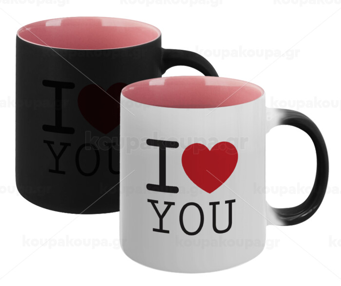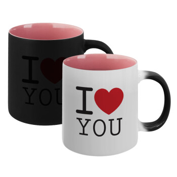 I Love you classic, Κούπα Μαγική εσωτερικό ΡΟΖ, κεραμική 330ml που αλλάζει χρώμα με το ζεστό ρόφημα