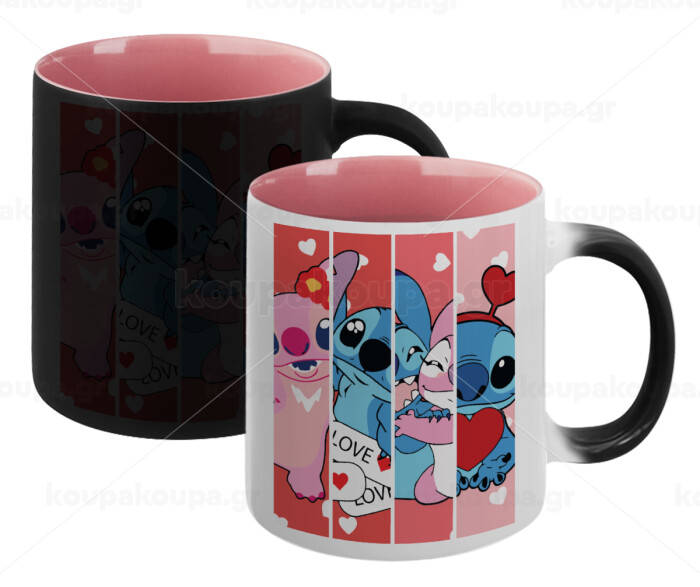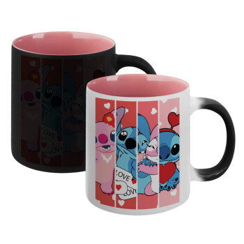 Lilo & Stitch Love, Κούπα Μαγική εσωτερικό ΡΟΖ, κεραμική 330ml που αλλάζει χρώμα με το ζεστό ρόφημα