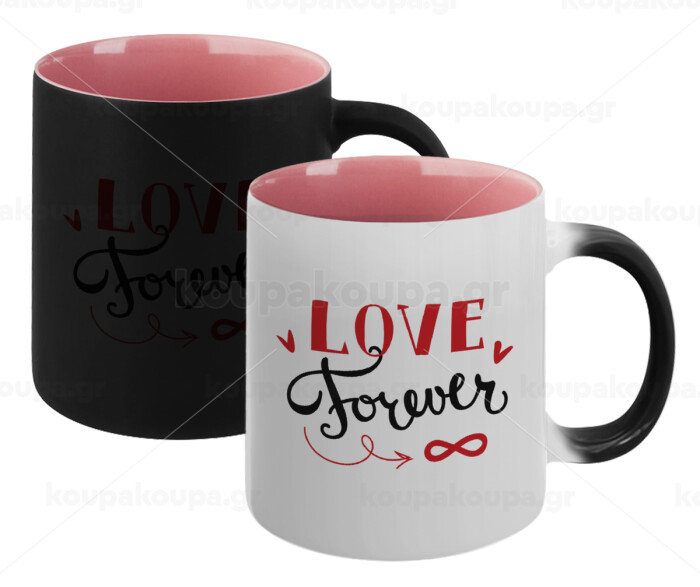 Love forever ∞, Κούπα Μαγική εσωτερικό ΡΟΖ, κεραμική 330ml που αλλάζει χρώμα με το ζεστό ρόφημα