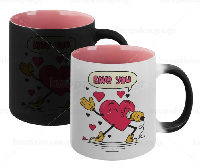 LOVE YOU SINGER!!!, Κούπα Μαγική εσωτερικό ΡΟΖ, κεραμική 330ml που αλλάζει χρώμα με το ζεστό ρόφημα