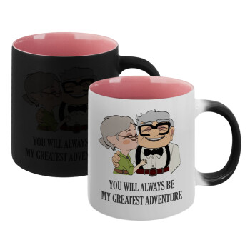 UP, YOU WILL ALWAYS BE MY GREATEST ADVENTURE, Κούπα Μαγική εσωτερικό ΡΟΖ, κεραμική 330ml που αλλάζει χρώμα με το ζεστό ρόφημα