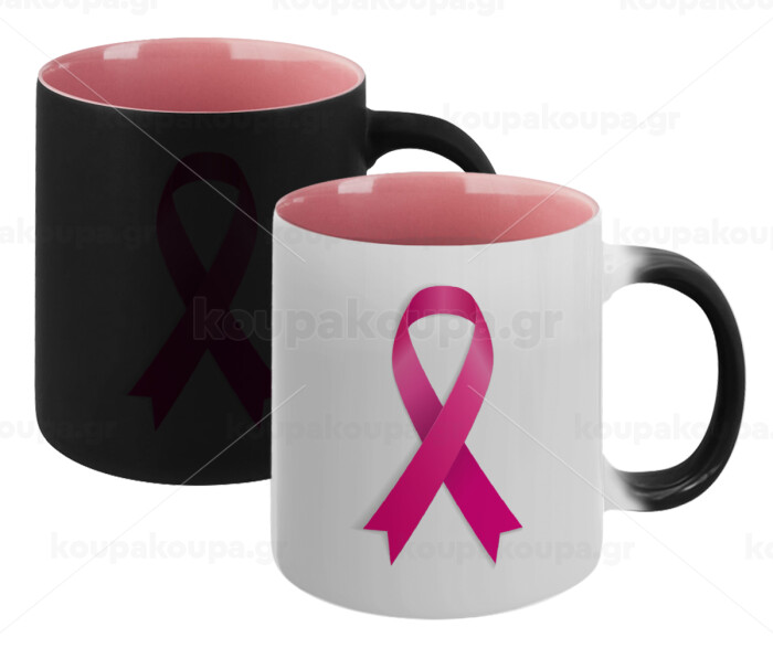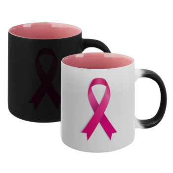 World cancer day, Κούπα Μαγική εσωτερικό ΡΟΖ, κεραμική 330ml που αλλάζει χρώμα με το ζεστό ρόφημα