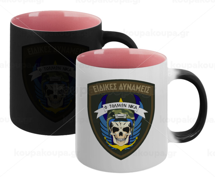 Hellas special force's, Κούπα Μαγική εσωτερικό ΡΟΖ, κεραμική 330ml που αλλάζει χρώμα με το ζεστό ρόφημα