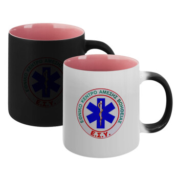ΕΚΑΒ, Κούπα Μαγική εσωτερικό ΡΟΖ, κεραμική 330ml που αλλάζει χρώμα με το ζεστό ρόφημα