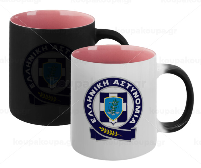 Ελληνική Αστυνομία, Κούπα Μαγική εσωτερικό ΡΟΖ, κεραμική 330ml που αλλάζει χρώμα με το ζεστό ρόφημα