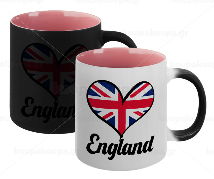 England flag, Κούπα Μαγική εσωτερικό ΡΟΖ, κεραμική 330ml που αλλάζει χρώμα με το ζεστό ρόφημα