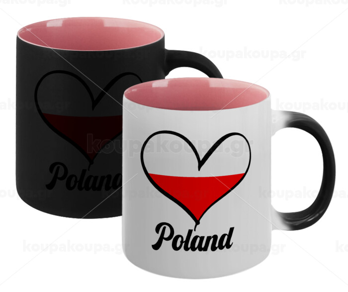 Poland flag, Κούπα Μαγική εσωτερικό ΡΟΖ, κεραμική 330ml που αλλάζει χρώμα με το ζεστό ρόφημα