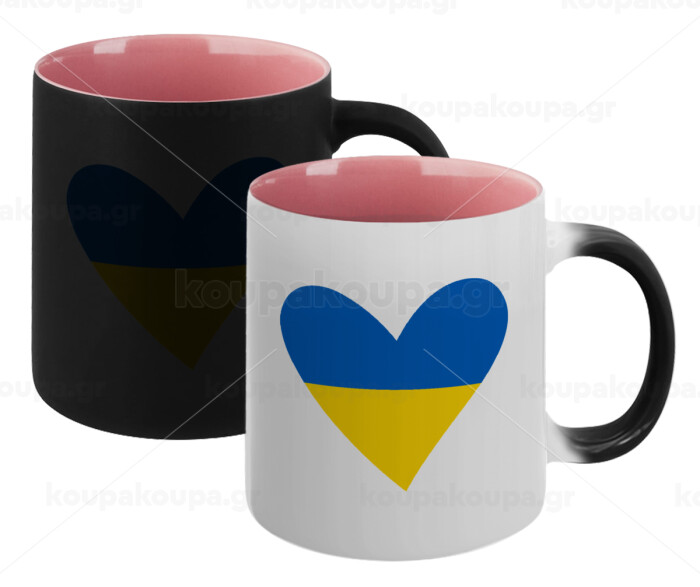 UKRAINE heart, Κούπα Μαγική εσωτερικό ΡΟΖ, κεραμική 330ml που αλλάζει χρώμα με το ζεστό ρόφημα