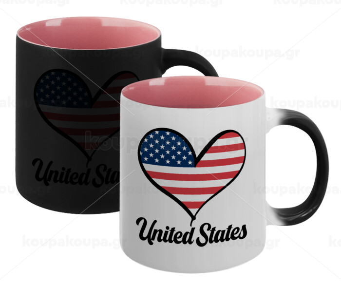 USA flag, Κούπα Μαγική εσωτερικό ΡΟΖ, κεραμική 330ml που αλλάζει χρώμα με το ζεστό ρόφημα