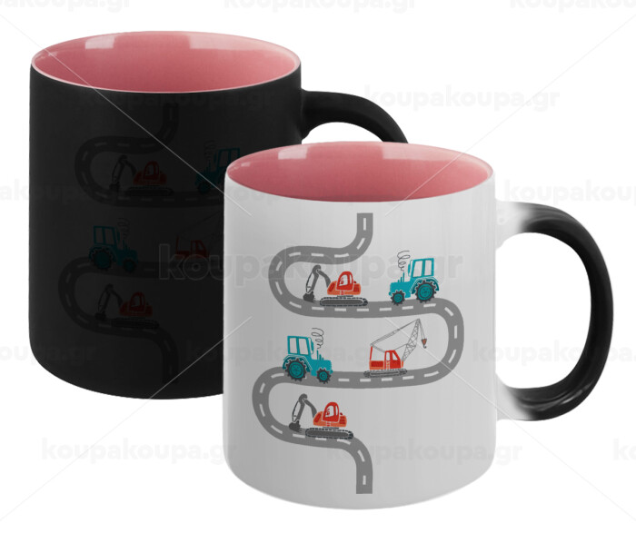 excavator along road, Κούπα Μαγική εσωτερικό ΡΟΖ, κεραμική 330ml που αλλάζει χρώμα με το ζεστό ρόφημα
