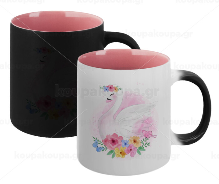 White swan, Κούπα Μαγική εσωτερικό ΡΟΖ, κεραμική 330ml που αλλάζει χρώμα με το ζεστό ρόφημα