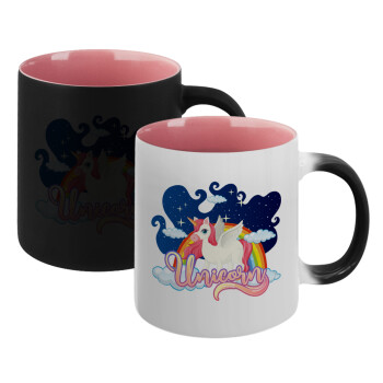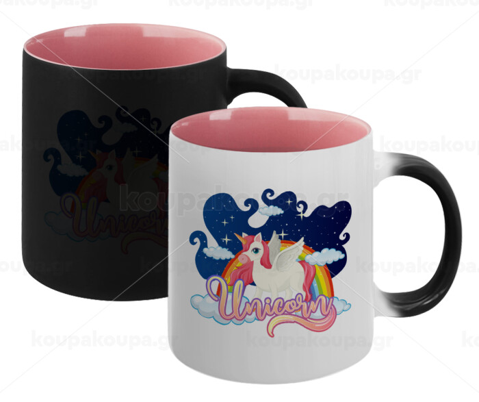 Μονόκερος, Κούπα Μαγική εσωτερικό ΡΟΖ, κεραμική 330ml που αλλάζει χρώμα με το ζεστό ρόφημα