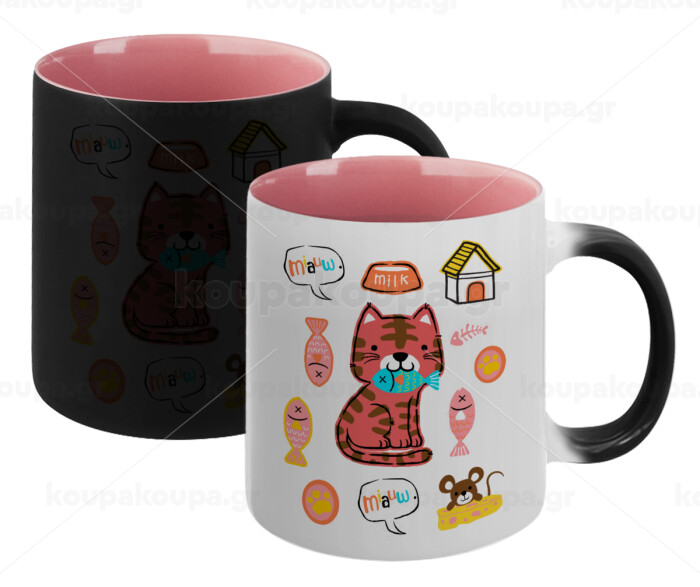 Cats and Fishes, Κούπα Μαγική εσωτερικό ΡΟΖ, κεραμική 330ml που αλλάζει χρώμα με το ζεστό ρόφημα