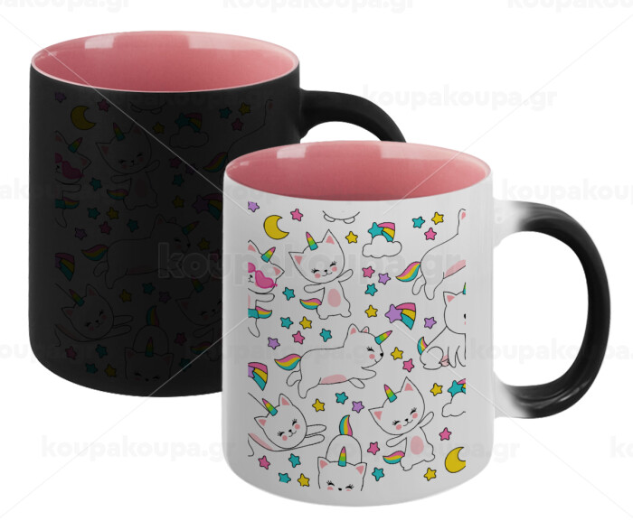 Cats unicorns, Κούπα Μαγική εσωτερικό ΡΟΖ, κεραμική 330ml που αλλάζει χρώμα με το ζεστό ρόφημα