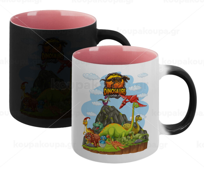 Dinosaur's world, Κούπα Μαγική εσωτερικό ΡΟΖ, κεραμική 330ml που αλλάζει χρώμα με το ζεστό ρόφημα