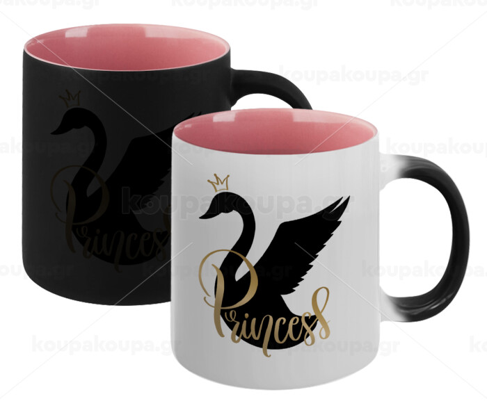 Swan Princess, Κούπα Μαγική εσωτερικό ΡΟΖ, κεραμική 330ml που αλλάζει χρώμα με το ζεστό ρόφημα