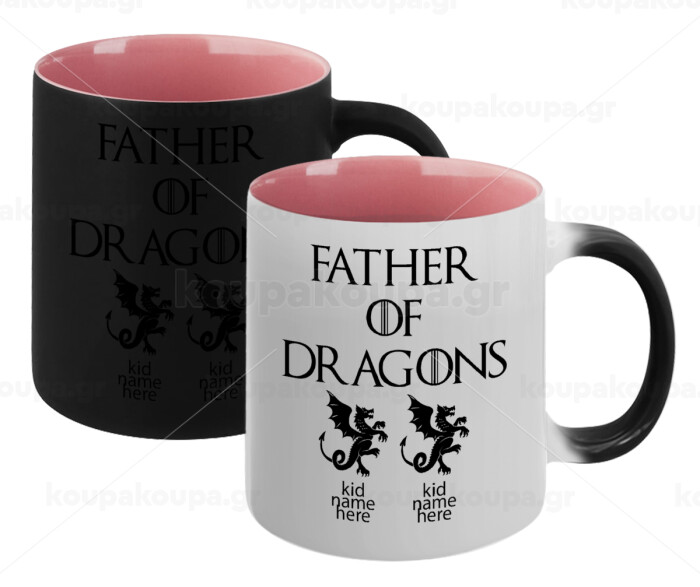 GOT, Father of Dragons (με ονόματα παιδικά), Κούπα Μαγική εσωτερικό ΡΟΖ, κεραμική 330ml που αλλάζει χρώμα με το ζεστό ρόφημα