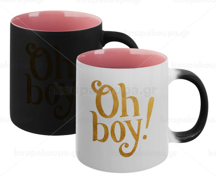 Oh baby gold, Κούπα Μαγική εσωτερικό ΡΟΖ, κεραμική 330ml που αλλάζει χρώμα με το ζεστό ρόφημα