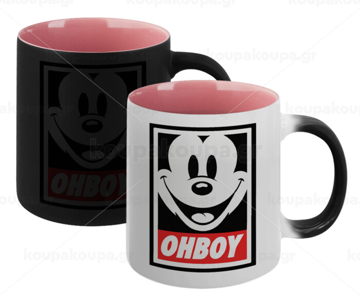 Oh boy μίκυ, Κούπα Μαγική εσωτερικό ΡΟΖ, κεραμική 330ml που αλλάζει χρώμα με το ζεστό ρόφημα