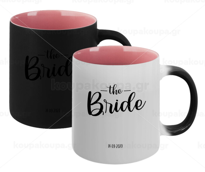 Groom & Bride (Bride), Κούπα Μαγική εσωτερικό ΡΟΖ, κεραμική 330ml που αλλάζει χρώμα με το ζεστό ρόφημα
