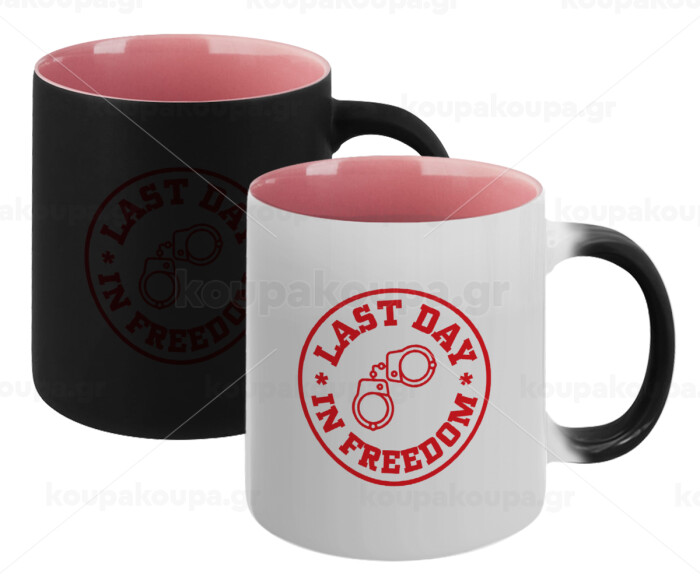 Last day freedom, Κούπα Μαγική εσωτερικό ΡΟΖ, κεραμική 330ml που αλλάζει χρώμα με το ζεστό ρόφημα