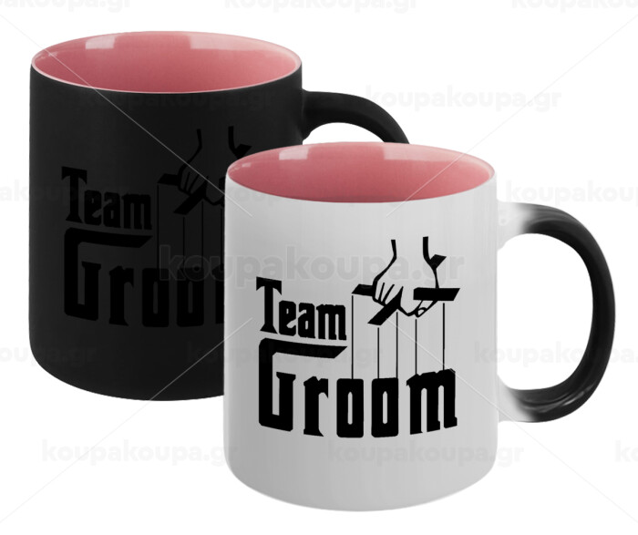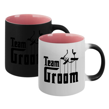 Team Groom, Κούπα Μαγική εσωτερικό ΡΟΖ, κεραμική 330ml που αλλάζει χρώμα με το ζεστό ρόφημα