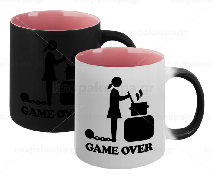 Woman Game Over, Κούπα Μαγική εσωτερικό ΡΟΖ, κεραμική 330ml που αλλάζει χρώμα με το ζεστό ρόφημα