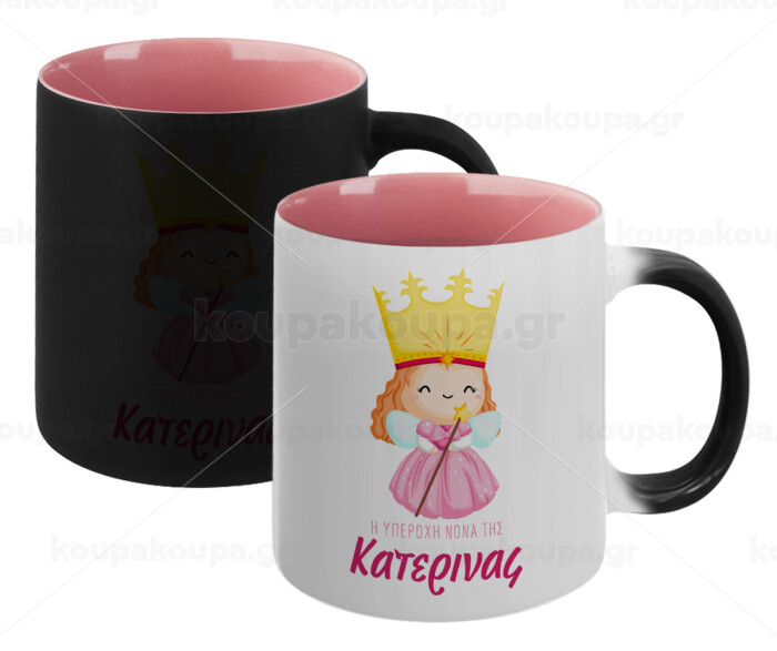 Η νονά μου, πριγκίπισσα, Κούπα Μαγική εσωτερικό ΡΟΖ, κεραμική 330ml που αλλάζει χρώμα με το ζεστό ρόφημα