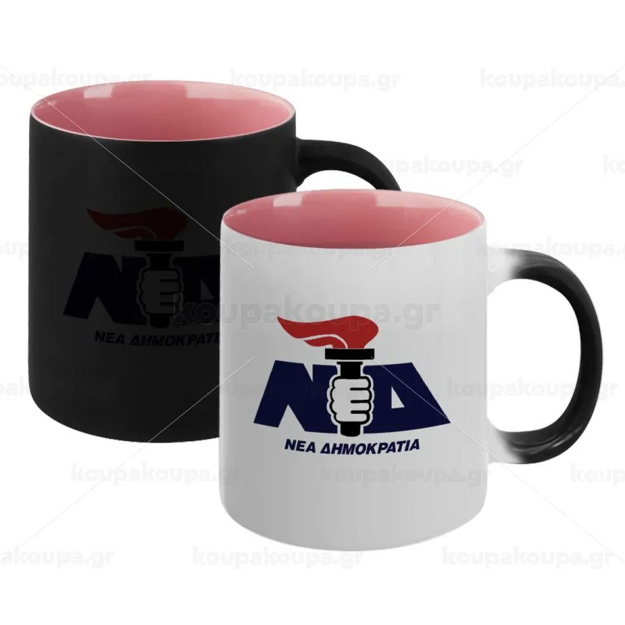 Νέα δημοκρατία κλασική, Κούπα Μαγική εσωτερικό ΡΟΖ, κεραμική 330ml που αλλάζει χρώμα με το ζεστό ρόφημα