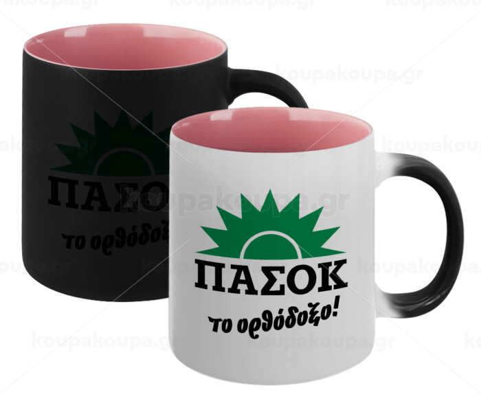 PASOK the orthodoxo, Κούπα Μαγική εσωτερικό ΡΟΖ, κεραμική 330ml που αλλάζει χρώμα με το ζεστό ρόφημα