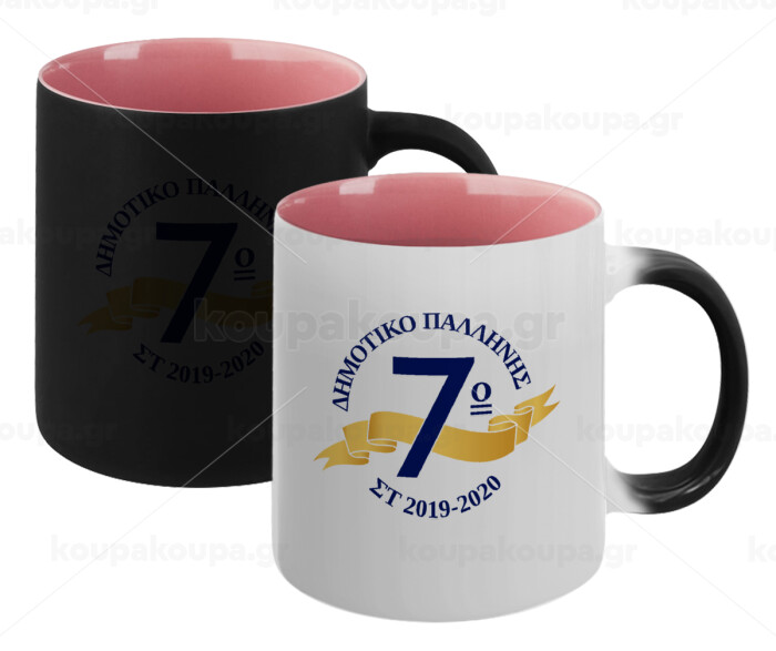 Σχολική μπλε με κορδέλα, Κούπα Μαγική εσωτερικό ΡΟΖ, κεραμική 330ml που αλλάζει χρώμα με το ζεστό ρόφημα