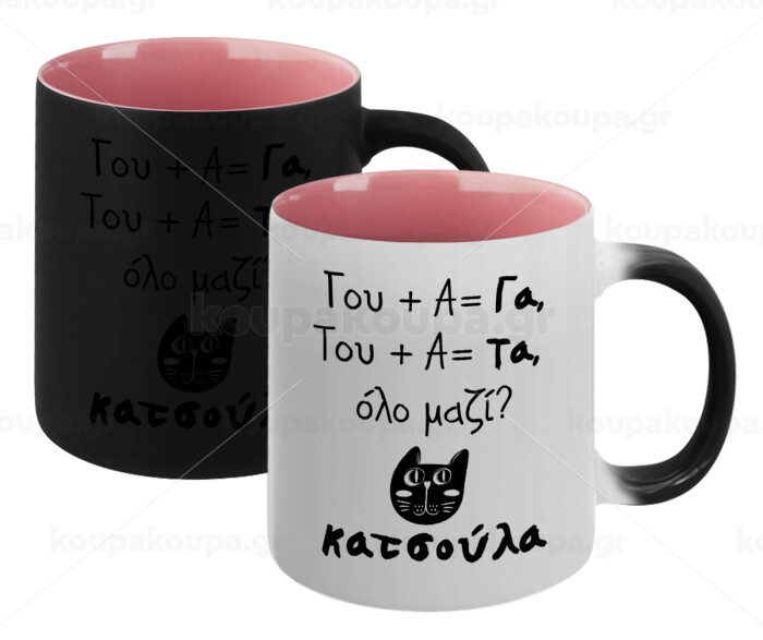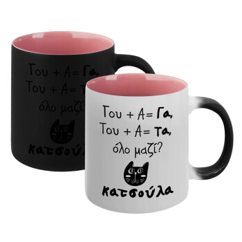 Κατσούλα, Κούπα Μαγική εσωτερικό ΡΟΖ, κεραμική 330ml που αλλάζει χρώμα με το ζεστό ρόφημα