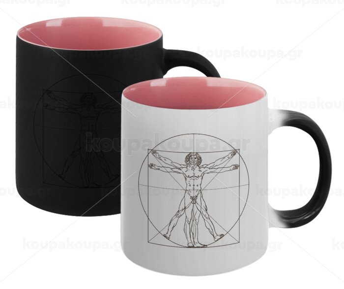 Leonardo da vinci Vitruvian Man, Κούπα Μαγική εσωτερικό ΡΟΖ, κεραμική 330ml που αλλάζει χρώμα με το ζεστό ρόφημα