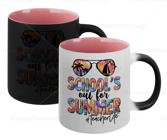 School's Out For Summer Teacher Life, Κούπα Μαγική εσωτερικό ΡΟΖ, κεραμική 330ml που αλλάζει χρώμα με το ζεστό ρόφημα