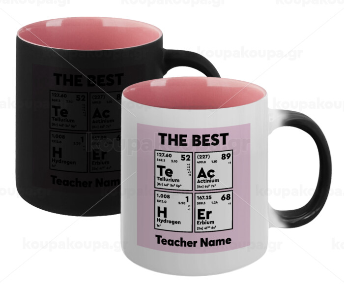 THE BEST Teacher chemical symbols, Κούπα Μαγική εσωτερικό ΡΟΖ, κεραμική 330ml που αλλάζει χρώμα με το ζεστό ρόφημα